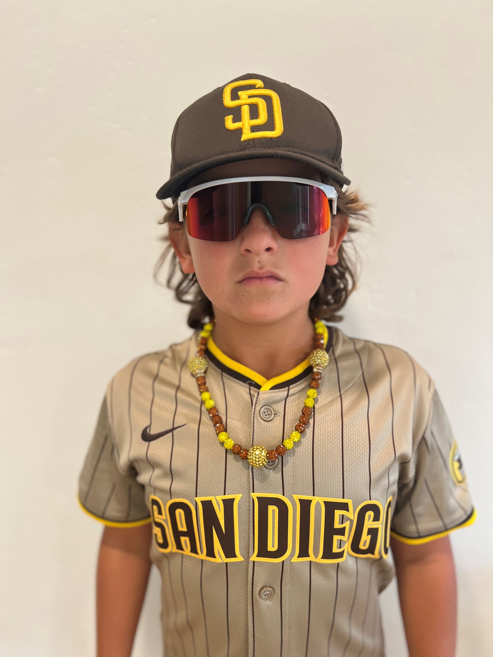 San Diego Padres Inspired - Yellow and Brown - Baseball Rhinestone Necklace